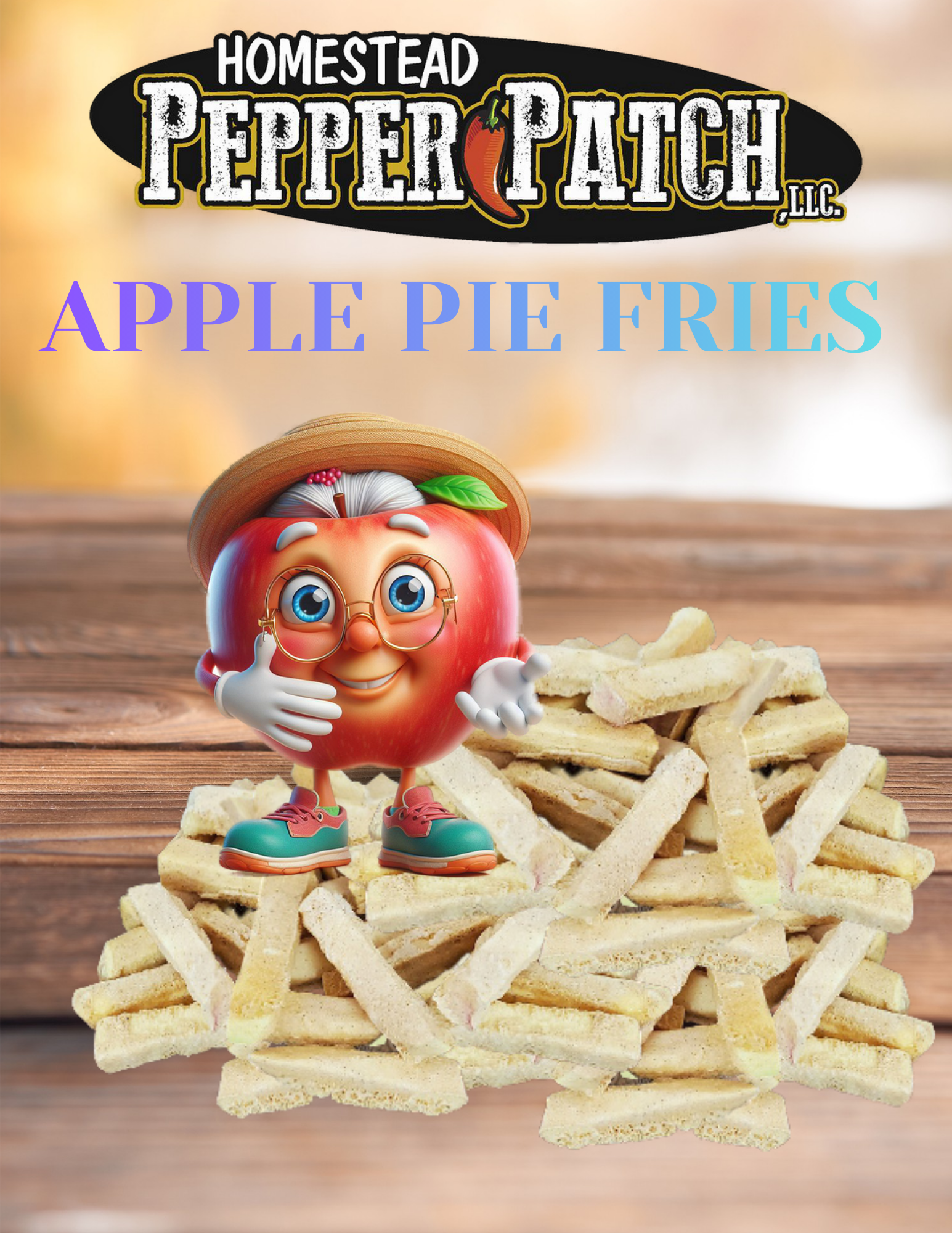 1 full bag (approx. 2 cups) of Freeze-Dried Apple Fries that taste like Apple Pie. Cosmic or Honey Crisp Apples cut into fries, coated with caramel glaze and apple pie seasoning. They are fun to eat as a crunchy guilt free snack or dip into your favorite nut butters or fruit dip.