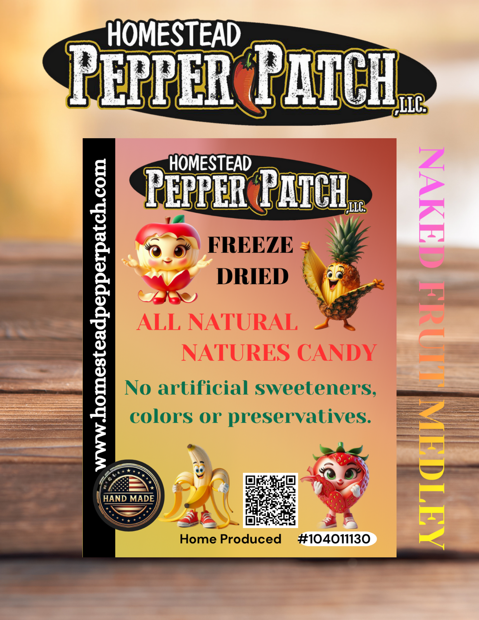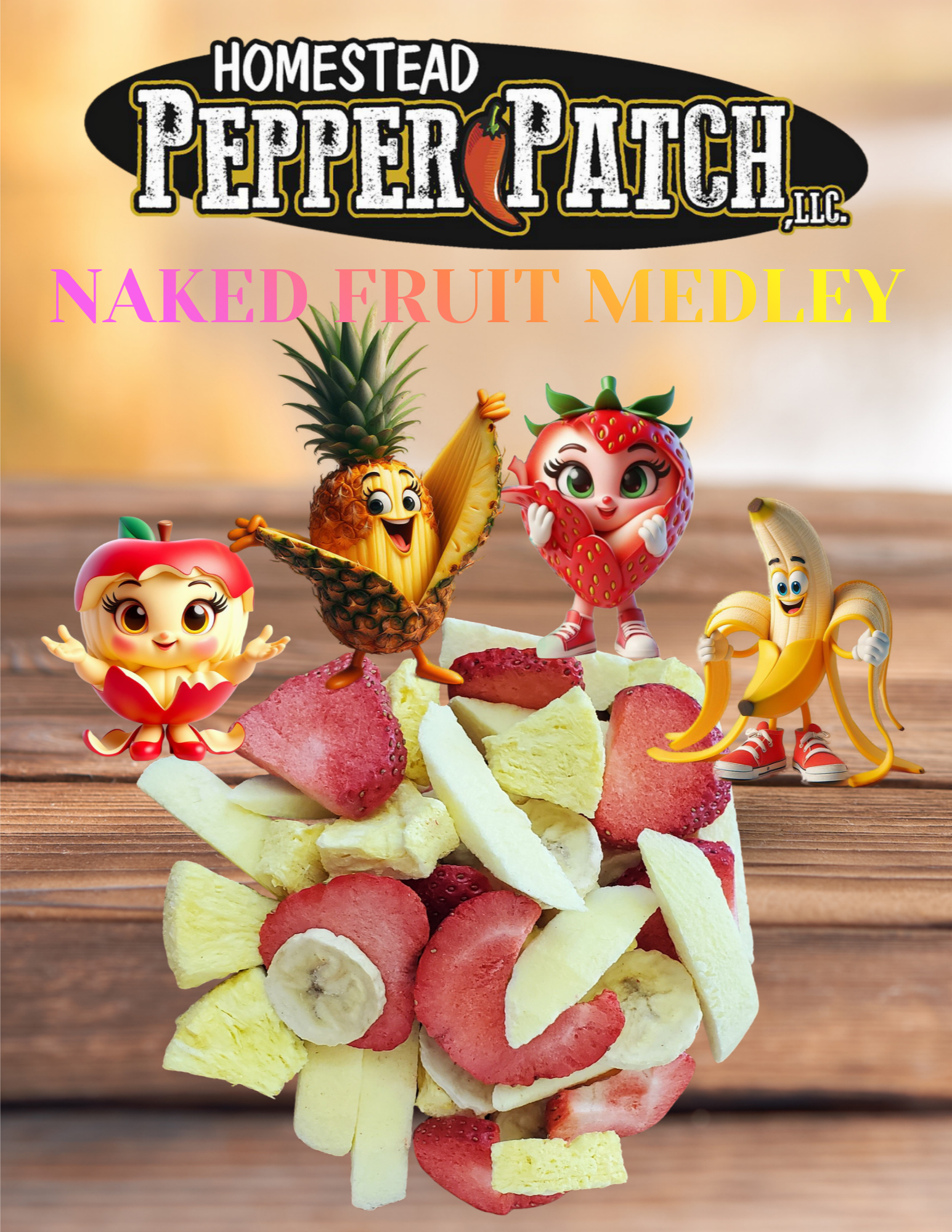 -If you can't decide which naked fruit to get, now you can have it all in one bag. Our Freeze-Dried Naked Fruit Medley contains a delicious and healthy mix of Apple Niblets, Banana Chips, Strawberry Slices, and Pineapple Pieces.